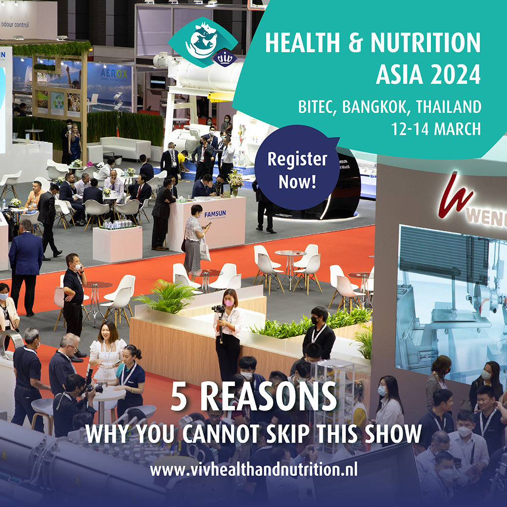 ลงทะเบียนเข้าชมงานโดยไม่เสียค่าใช้จ่าย ได้ที่ https://www.databadge.net/viah2024/reg/?card=10010382 / https://vivhealthandnutrition.nl