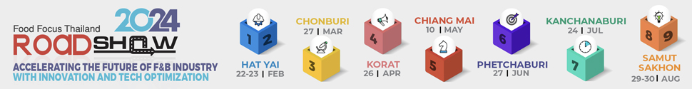 Food Focus Thailand Roadshow 2024 พร้อมเป็นส่วนหนึ่งในการร่วมผลักดันอุตสาหกรรมอาหารของไทยให้ก้าวสู่การเป็นศูนย์กลางผลิตและส่งออกอาหารระดับภูมิภาค (Regional Food HUB) พร้อมสนับสนุนให้อุตสาหกรรมอาหารและเครื่องดื่มของไทยเติบโตอย่างมั่นคงพร้อมรับมือวิกฤตอาหารโลก กับการจัดงานสัมมนาในธีม “ACCELERATING THE FUTURE OF F&B INDUSTRY WITH INNOVATION AND TECH OPTIMIZATION” ขับเคลื่อนอนาคตอุตสาหกรรมอาหารและเครื่องดื่มด้วยนวัตกรรมและเทคโนโลยี
