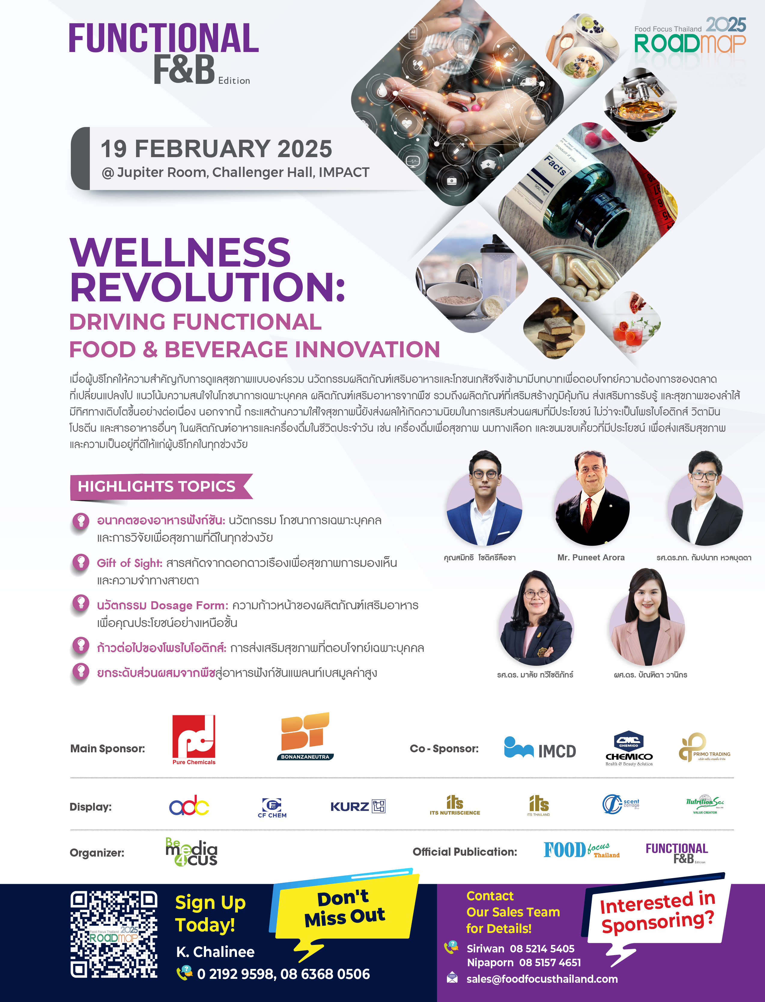 เมื่อผู้บริโภคให้ความสำคัญกับการดูแลสุขภาพแบบองค์รวม นวัตกรรมผลิตภัณฑ์เสริมอาหารและโภชนเภสัชจึงเข้ามามีบทบาทเพื่อตอบโจทย์ความต้องการของตลาดที่เปลี่ยนแปลงไป แนวโน้มความสนใจในโภชนาการเฉพาะบุคคล ผลิตภัณฑ์เสริมอาหารจากพืช รวมถึงผลิตภัณฑ์ที่เสริมสร้างภูมิคุ้มกัน ส่งเสริมการรับรู้ และสุขภาพของลำไส้ มีทิศทางเติบโตขึ้นอย่างต่อเนื่อง นอกจากนี้ กระแสด้านความใส่ใจสุขภาพนี้ยังส่งผลให้เกิดความนิยมในการเสริมส่วนผสมที่มีประโยชน์ ไม่ว่าจะเป็นโพรไบโอติกส์ วิตามิน โปรตีน และสารอาหารอื่นๆ ในผลิตภัณฑ์อาหารและเครื่องดื่มในชีวิตประจำวัน เช่น เครื่องดื่มเพื่อสุขภาพ นมทางเลือก และขนมขบเคี้ยวที่มีประโยชน์ เพื่อส่งเสริมสุขภาพและความเป็นอยู่ที่ดีให้แก่ผู้บริโภคในทุกช่วงวัย