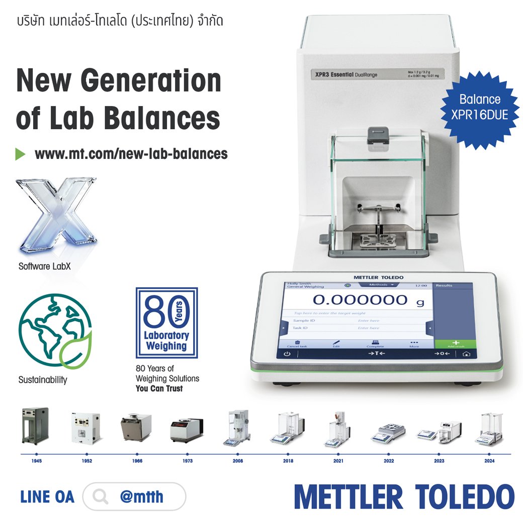 METTLER TOLEDO เป็นผู้ผลิตและผู้ให้บริการเครื่องมือวิเคราะห์ เครื่องชั่งในห้องปฏิบัติการ และเครื่องชั่งในอุตสาหกรรมที่มีความแม่นยำสูงในระดับต้นๆ ของโลก เรานำเสนอโซลูชันเครื่องมือวิเคราะห์ในห้องปฏิบัติการ, เครื่องมือวิเคราะห์แบบอินไลน์, เครื่องชั่งดิจิทัล และเครื่องตรวจสอบผลิตภัณฑ์ที่ตอบโจทย์การใช้งานได้ครบทุกกระบวนการผลิตของลูกค้า เพื่อช่วยให้ทุกกระบวนการของลูกค้ามีประสิทธิภาพสูงสุด ช่วยเพิ่มผลผลิต ลดต้นทุนในการดำเนินงานและเป็นไปตามกฏข้อกำหนดในปัจจุบัน