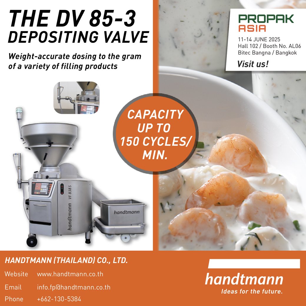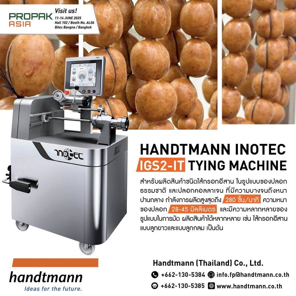 Handtmann (Thailand) Co., Ltd เป็นบริษัทย่อยของ Handtmann Group of Companies เราเป็นตัวแทนจำหน่ายแต่เพียงผู้เดียวของแบรนด์ Handtmann, Inotec และ Verbufa ในประเทศไทยเรามีเครื่องจักรหลากหลายชนิดสำหรับอุตสาหกรรมการแปรรูปอาหาร เช่น เทคโนโลยีการบรรจุแบบสุญญากาศ อุปกรณ์การขึ้นรูป การหยอด เครื่องสอดไส้โค-เอ็ก เครื่องผสม อิมัลซิไฟเออร์ เครื่องตัดแยกไส้กรอก เทคโนโลยีกระบวนการผลิต เครื่องจักรข้างต้นจะครอบคลุมถึงแอปพลิเคชั่นสำหรับไส้กรอกและเนื้อสัตว์ ขนมปังอบและแป้งโด ผลิตภัณฑ์จากนม ปลา สินค้าสะดวกซื้อ อาหารสำเร็จรูป อาหารสัตว์ และผลิตภัณฑ์แป้งอื่น ๆ