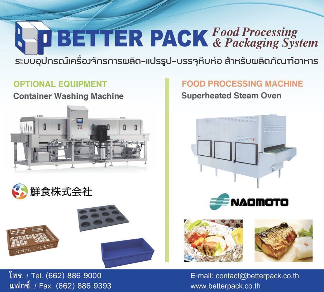 บริษัท เบทเตอร์แพ็ค จำกัด ก่อตั้งขึ้นเมื่อปี พ.ศ. 2512 และ เป็นผู้เชี่ยวชาญด้านเครื่องจักรแปรรูปอาหารและบรรจุหีบห่อ เช่น เครื่องฆ่าเชื้อ ตู้อบไอน้ำร้อนยิ่งยวด เครื่องทอด เครื่องทอดอินฟราเรด เครื่องกรองน้ำมัน ระบบหุงข้าวอัตโนมัติ เครื่องจักรแปรรูปผักและเนื้อ เครื่องบด เครื่องหั่นเต๋า เครื่องผสม เครื่องชั่งชนิดหลายหัวชั่ง เครื่องบรรจุห่ออัตโนมัต เครื่องบรรจุ-ซีลถุงและถาด เครื่องตรวจสอบน้ำหนัก เครื่องแพ็คสุญญากาศ เครื่องพิมพ์วันที่ เครื่องอบฟิล์มหด เครื่องซีลปิดปากถุง ระบบตรวจจับสิ่งปลอมปน ระบบแขนกล และระบบบรรจุกล่องอัตโนมัติ